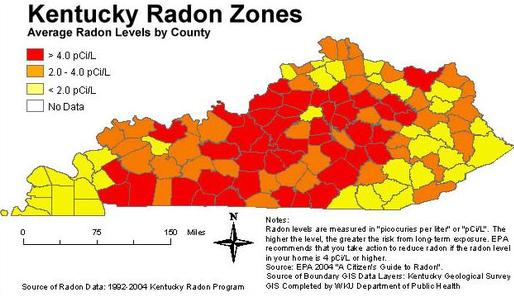 How much radon is present in Kentucky homes?